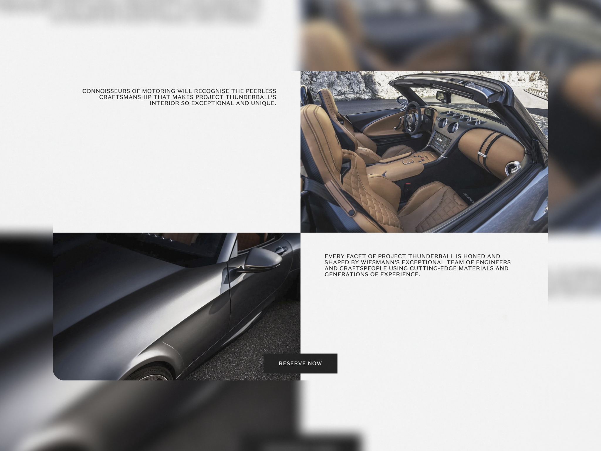 Wiesmann was founded by brothers Martin and Friedhelm Wiesmann in 1988. It was the brothers’ relentless belief that it was possible to produce a car that defied the norm of the sports car world. Today, that baton has been passed on to an equally dedicated and passionate sibling duo, with an equally fierce dedication to creating an unbounded automotive masterpiece. We partnered with Electoheads and Wiesmann to deliver a contemporary refresh of there existing site in line with the release of project thunderball. Their first electric car offering.